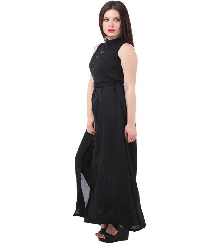 KMB Women Solid Poly Georgette Straight Kurta (Black)