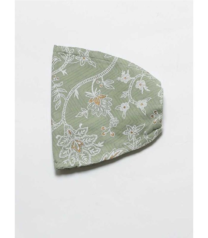 Green Cotton Printed Fit And Flared Maxi Dress With Cotton Printed Mask