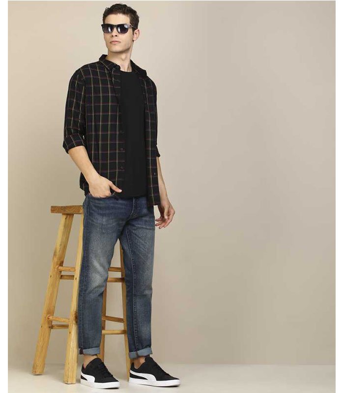 Men Regular Fit Striped Slim Collar Casual Shirt