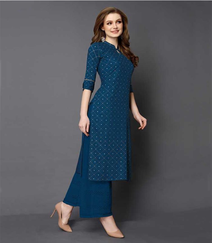 Saras Women Printed Rayon Straight Kurta (Dark Blue)