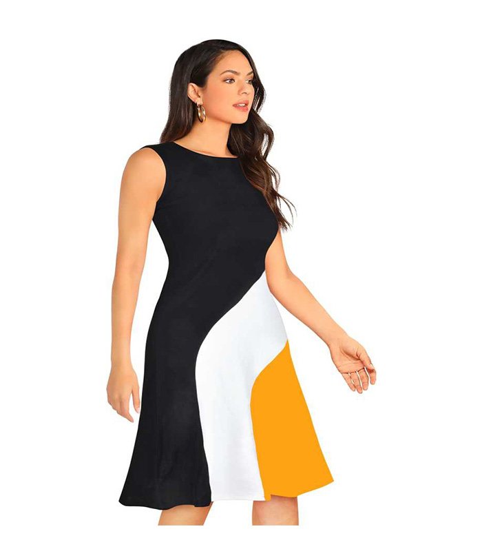 Miss Rare Women Skater Black, White, Yellow Dress