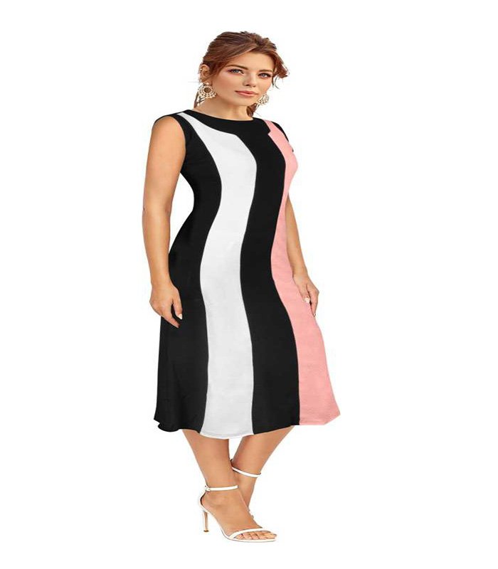 Miss Women Skater Black, White, Red Dress