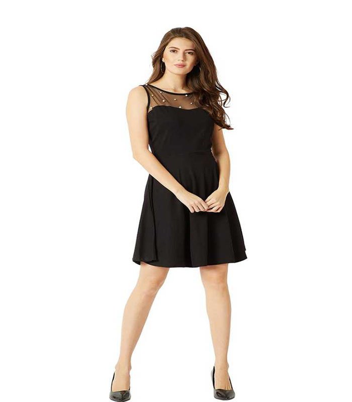 Miss Women Fit and Flare Black Dress