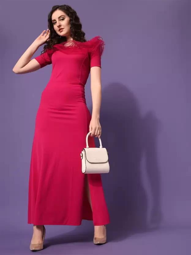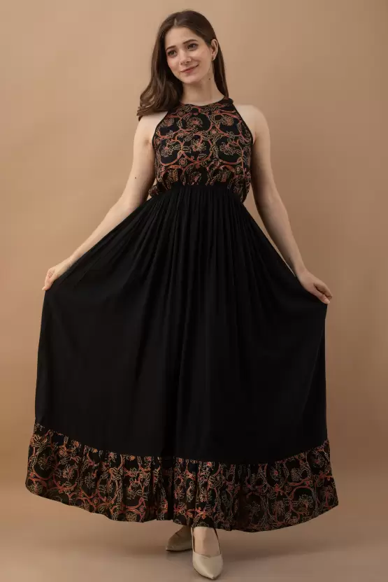 Royal Solid Georgette Blend Stitched Flared/A-line Gown  (Black)