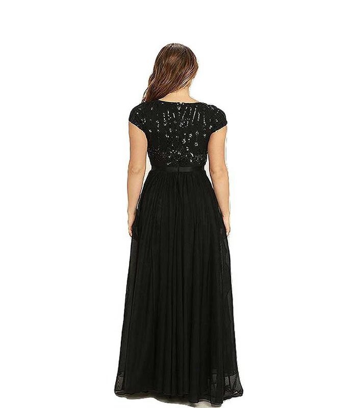 Royal Solid Georgette Blend Stitched Flared/A-line Gown (Black)