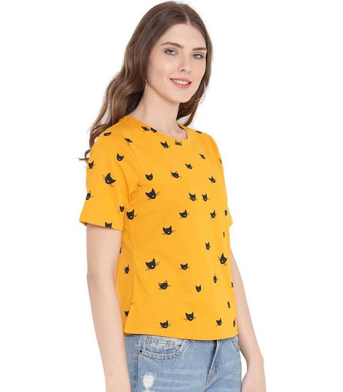Casual Half Sleeve Printed Women Yellow Top